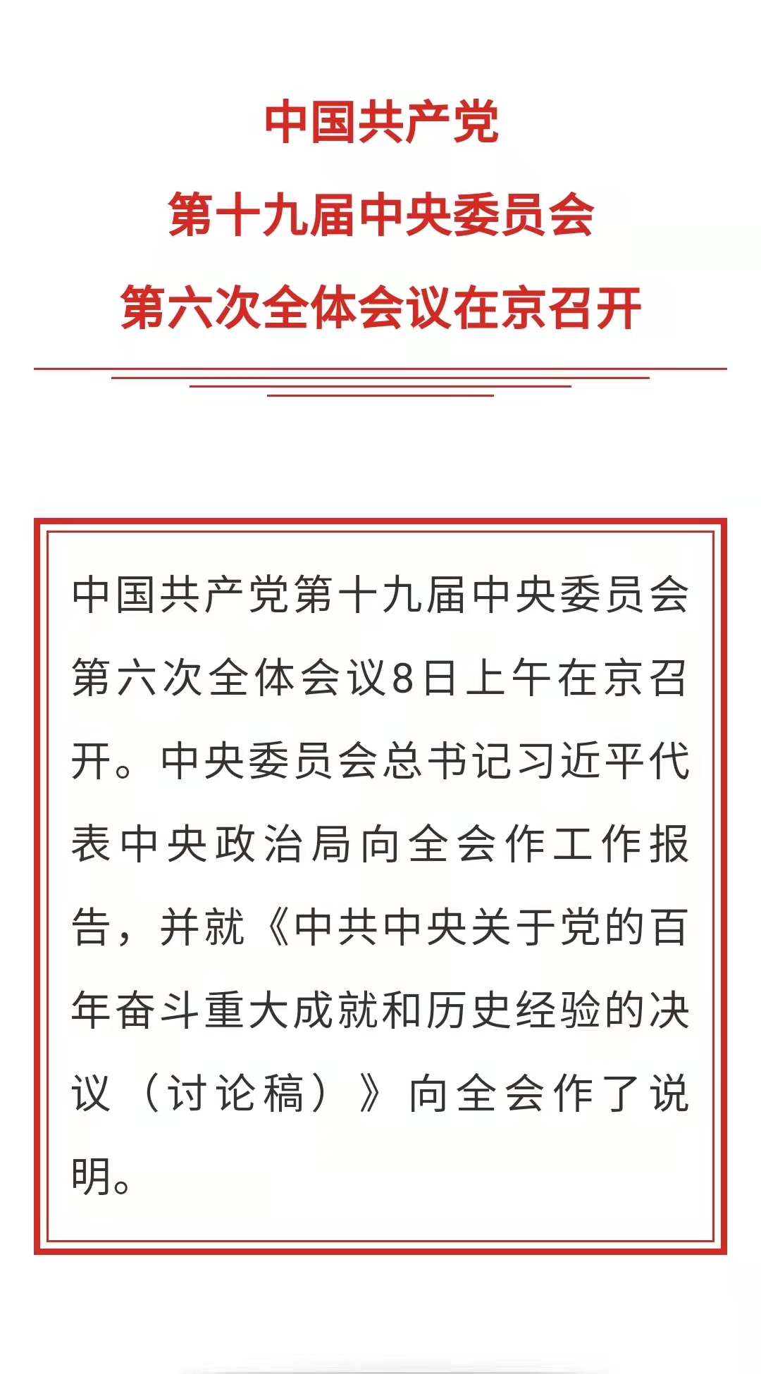 十九届六中全会在京召开