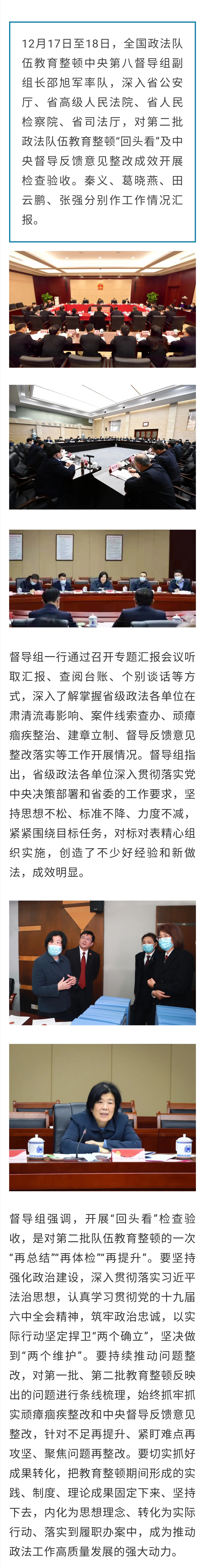 中央第八督导组对省级政法各单位教育整顿“回头看”成效开展检查验收
