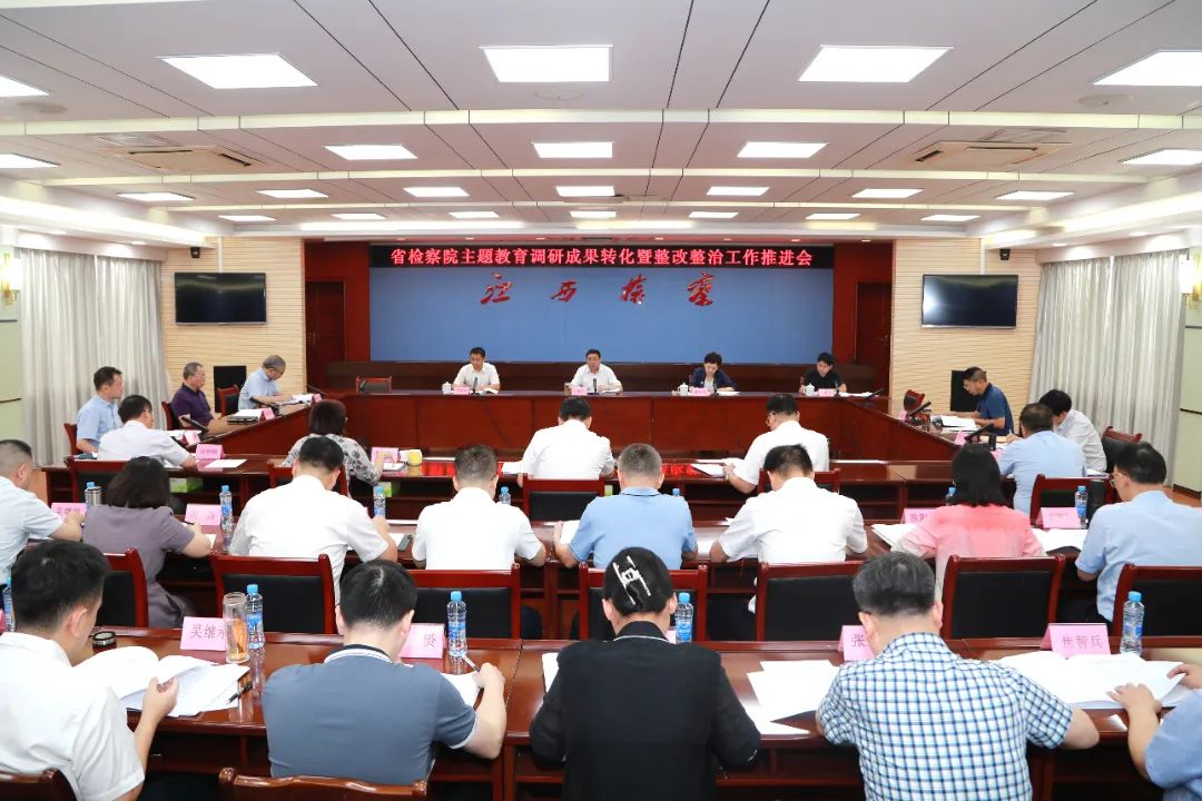 717日,小丑撸 召开主题教育调研成果转化暨整改整治工作推进会,认真落实中央、省委主题教育工作部署和省委第五巡回指导组有关要求,梳理调研成果转化和问题整改整治工作进展,交流工作情况,研究部署下一阶段重点工作。省人民小丑撸 党组书记、检察长、院主题教育领导小组组长丁顺生主持并讲话。省委第五巡回指导组组长戴春英到会指导并讲话。