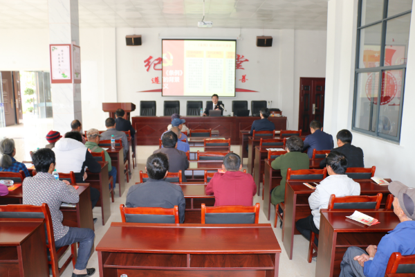 机关党委负责人为村民讲党课,重点围绕《中国共产党农村基层组织工作条例》进行讲解,并结合白槎村的事例,讲授白槎村在村党支部的带领和小丑撸