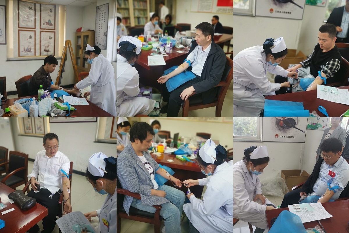 参与献血的干部职工在工作人员的指引下,严格按照献血程序,有条不紊地登记填表、测量血压、化验采血。他们当中,既有多年坚持无偿献血的“老检察人”,也有首次献血的年轻干警。