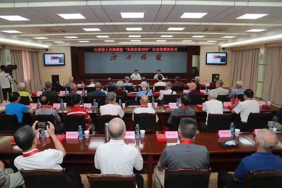 表示,党中央决定首次颁发“光荣在党50年”纪念章,充分体现了以习近平同志为核心的党中央的关怀和温暖,体现了党和人民对老党员历史贡献的充分肯定。广大老党员是党和国家,特别是江西检察发展改革进程的亲历者、见证者、实践者和推动者。检察工作的发展史,就是一代代检察人员的奋斗史。每一位老同志都是检察工作的功臣,都是检察机关的财富,都是在职检察人员的骄傲,都是广大青年党员的榜样。要永远铭记老一辈共产党人的历史功绩,倍加珍惜老一代检察人员创造的宝贵精神财富,激发新担当、展现新作为,为全面推进江西检察事业发展、描绘好新时代江西改革发展新画卷,实现中华民族伟大复兴的中国梦而努力奋斗!